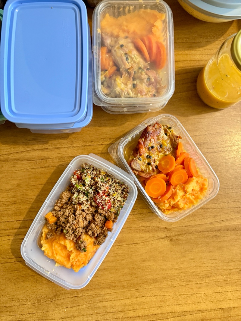 Perfeito para quem mora sozinho ou para casais que querem variedade sem precisar cozinhar todos os dias. ✔️ Inclui: 2 tipos de proteína, 3 acompanhamentos e 2 tipos de carboidrato. ➡️ Com esse pacote, você já consegue organizar várias refeições da semana sem esforço.